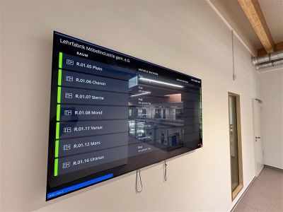 Gemeinsam mit der Lehrfabrik Möbelindustrie Löhne haben wir eine digitale Raumorganisation für den Neubau realisiert. Entstanden ist ein modernes Aus- und Weiterbildungszentrum auf 3800 m², das praxisnahe Lernräume mit einer klar strukturierten Raumbuchung verbindet. Ziel war es, Orientierung zu schaffen, Prozesse zu vereinfachen und Ausbildung im Handwerk zukunftsfähig zu gestalten.